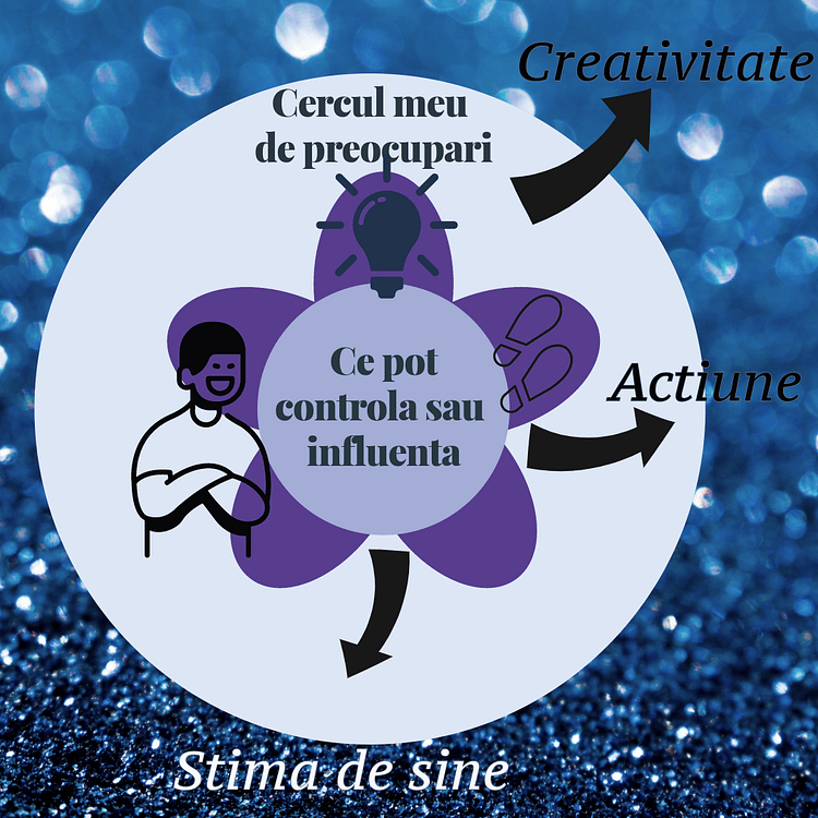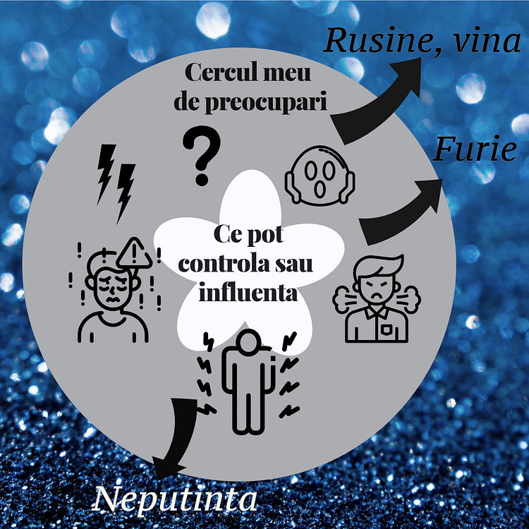 Asadar data urmatoare cand esti intr-o situatie in care te simti coplesit/a, neputincios/oasa, constant iritat/a, vinovat/a te invit sa te intrebi Ce pot controla si/sau influenta direct/indirect?