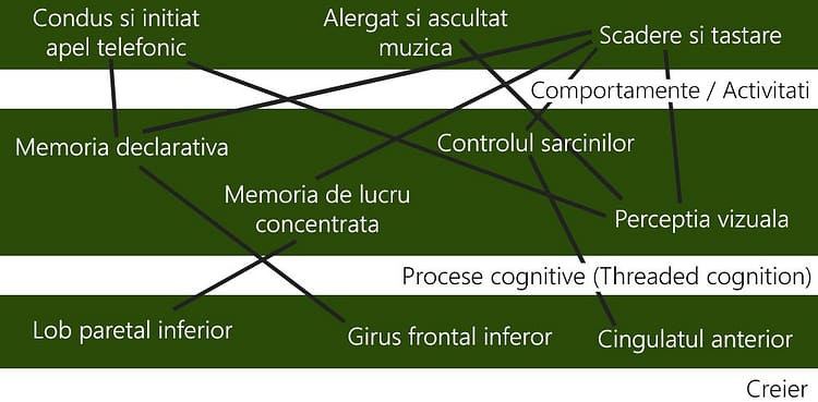Salvucci si Taatgen au emis o teorie conform careia procesarea sarcinilor se pot grupa in circuite diferite (teoria in original poarta numele de threaded cognition), si ca atata vreme cat aceste circuite nu solicita aceleasi resurse, nu este nici o problema in a executa 2 sarcini in acelasi timp. Daca dimpotriva, 2 sarcini concureaza pe aceleasi resurse (adica aceeasi zona din creier), acestea vor fi ordonate pentru executie, nu vor fi duse la bun sfarsit in acelasi timp.